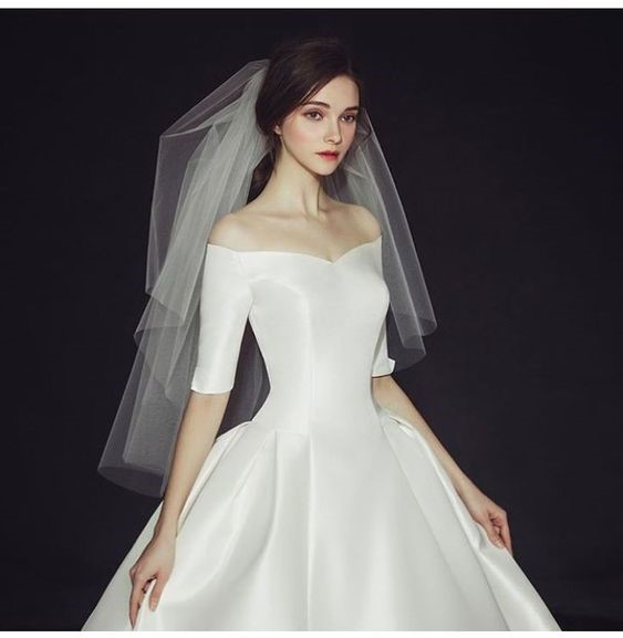 Với kiểu tóc tự nhiên này, cô dâu nên lựa chọn những mẫu váy được thiết kế đơn giản, thanh lịch, tạo ấn tượng với khách mời bằng vẻ ngoài nhã nhặn và thanh tao.