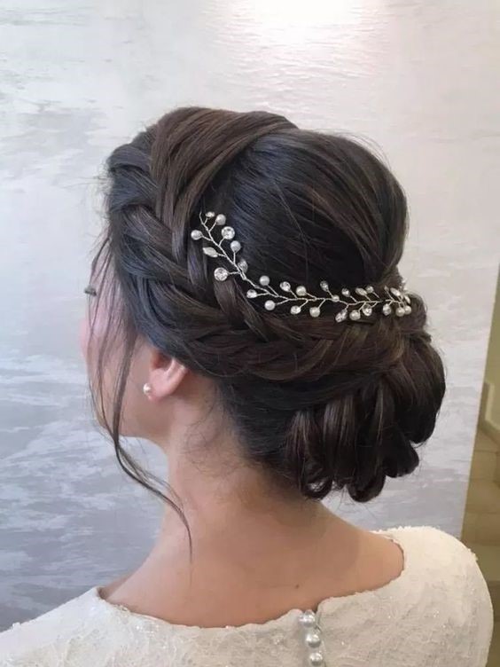 Kiểu tóc búi Chignon kết hợp cùng những phụ kiện như vương miện hay cài tóc đính đá càng khiến cô dâu nổi bật trong ngày trọng đại.