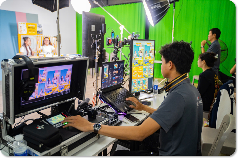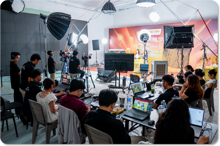 - Trang thiết bị: Thiết bị livestream, quay talkshow chuyên nghiệp và luôn được nâng cấp hiện đại phù hợp với từng nhu cầu của khách hàng để đạt được những khung hình đẹp và sắc nét.
