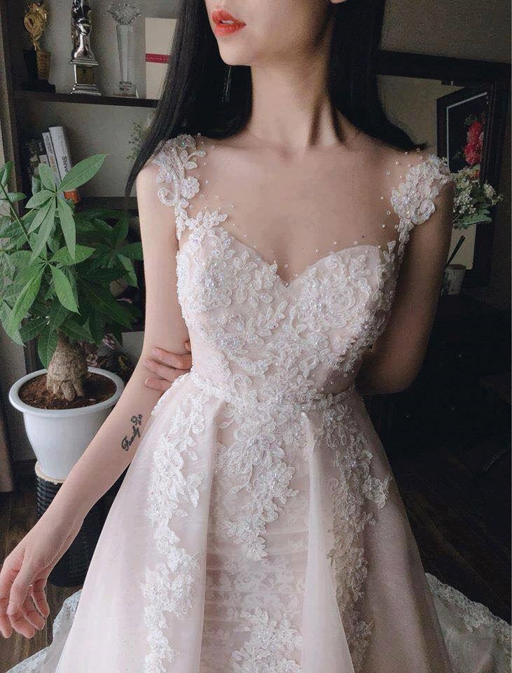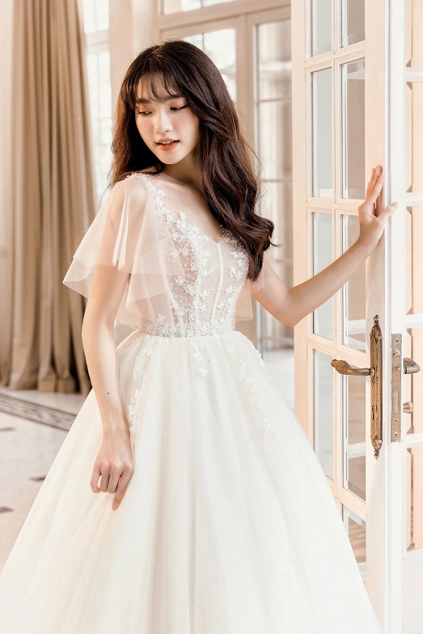 Đặc biệt, phần đuôi váy dài mang đến nét mềm mại và thướt tha theo từng bước di chuyển của cô dâu.
