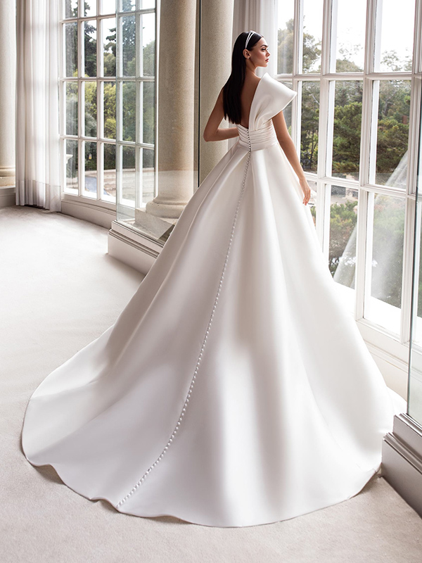 Những chiếc váy cưới được may từ chất liệu sa – tanh đều mang một form dáng rất đẹp vì tính chất của vải có tính kết cấu. Vải có độ bóng tùy thuộc vào ánh sáng chiếu vào. Ở nơi ánh sáng tốt chiếc váy càng thêm lộng lẫy và huyền ảo vô cùng. Những cô nàng phê phong cách cổ điển, lãng mạn không thể không “nghía” qua những mẫu váy cưới này.