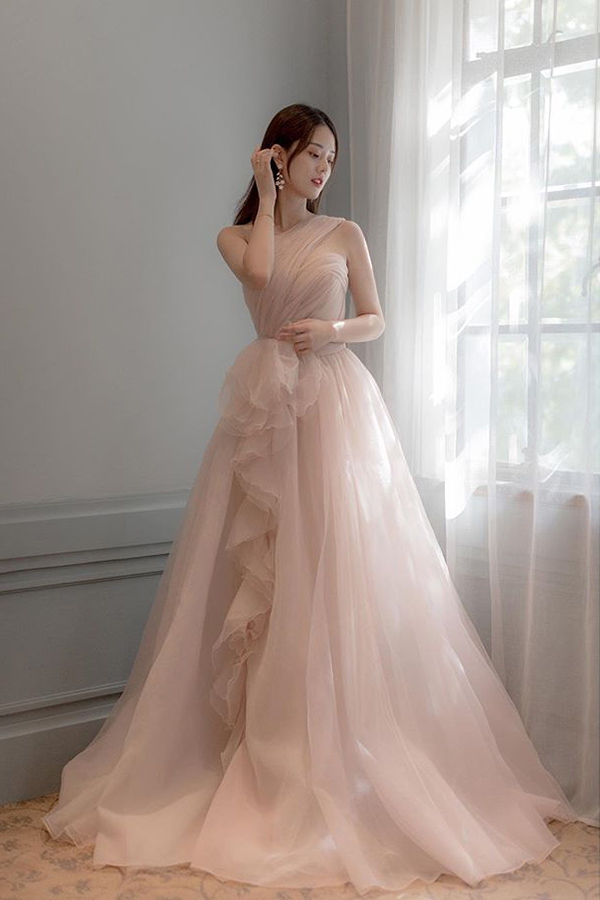 So với các chất liệu khác, chất liệu sa-tanh không có những họa tiết lung linh nhưng lại gây thương nhớ bao ánh nhìn bởi sự lộng lẫy vốn có của chiếc váy mang đến.