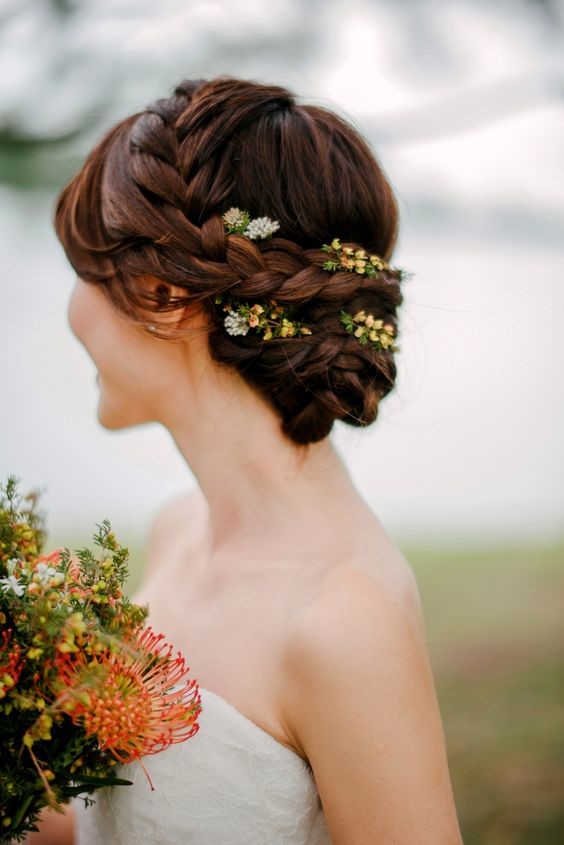 Tóc tết vương miện là mẫu tóc cô dâu đặc biệt dành cho những nàng dâu điệu đà. Tóc tết được quấn quanh đầu thay thế vẻ đẹp lộng lẫy của chiếc vương miện bằng vẻ đẹp ngọt ngào. Điểm xuyết thêm bằng một vài bông hoa hay một phụ kiện đính đá đơn giản càng làm tăng thêm nét thanh tao nhẹ nhàng của cô dâu.