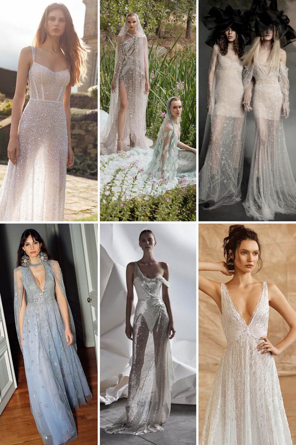 Từ trái qua: Andre Iyamah Bridal Fall 2020; Monique Lhuillier Bridal Fall 2020; Elie Saab Bridal Spring 2021; Valentin Avoh Bridal Fall 2020; Danielle Frankel Bridal Fall 2020; Cecilie Bahnsen mùa xuân năm 2021.