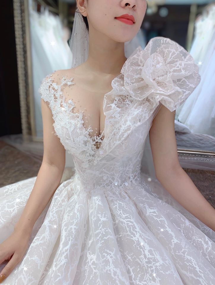 Đặc biệt với những chiếc váy được cách điệu với phần vai hở và xẻ ngực, cô dâu vẫn thừa sức toát lên vẻ quyến rũ khi mặc.