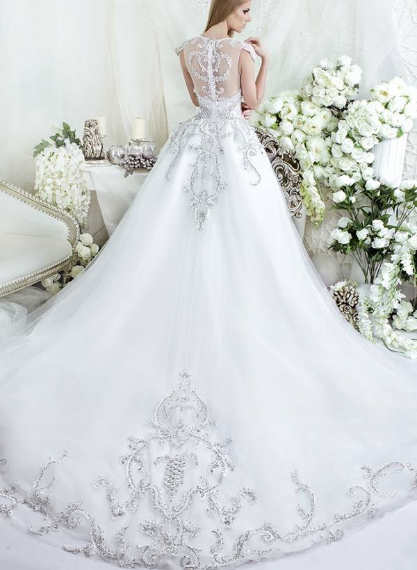 Mẫu váy cưới chất liệu tuyn kết hợp đính đá